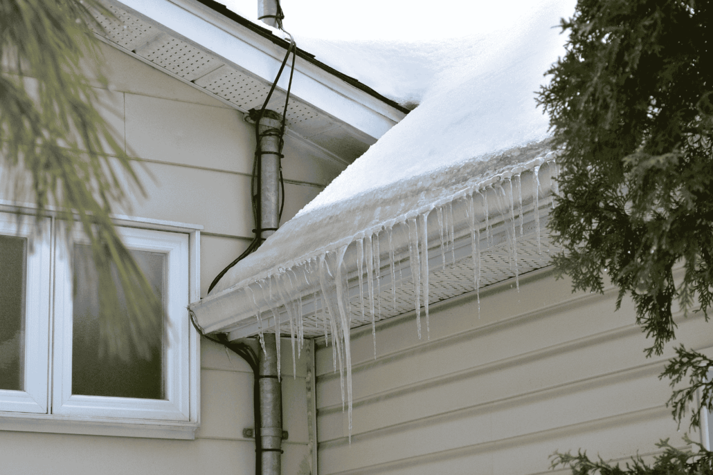 Leaves, shingle granules, and roof debris restrict water flow, leaving melted runoff with nowhere to go. As temperatures drop, trapped water turns to ice, adding weight that can pull gutters away from fascia boards or cause overflow near the foundation.